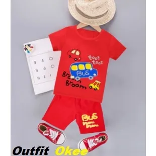 SETELAN ANAK ANAK/UNISEX/SETELAN ANAK MURAH BUS MERAH COD