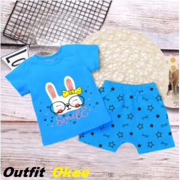 SETELAN ANAK ANAK/UNISEX/SETELAN MURAH BIRU SMILE COD