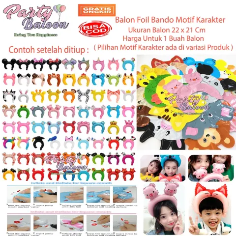 Balon Bando Kepala Anak Karakter binatang Bondu Hiasan kepala Satuan Murah| Animal Headband Baloon