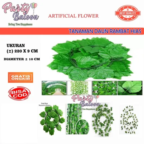 Tanaman Daun Rambat Plastik Anggur satuan | Bunga artifisial hias dekorasi Dinding murah 20 x 9 cm