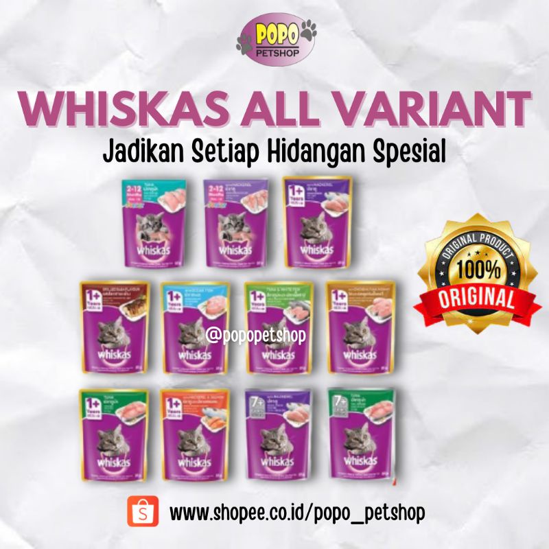 Makanan Kucing Basah Whiskas Pouch All Variant Adult Kitten Junior Sachet 80gr