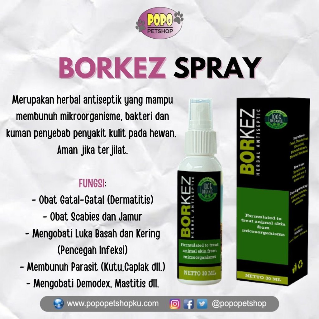 Obat Spray Jamur Kutu Scabies Kucing Anjing Kelinci Hewan Peliharaan BORKEZ 30ml Original Termurah