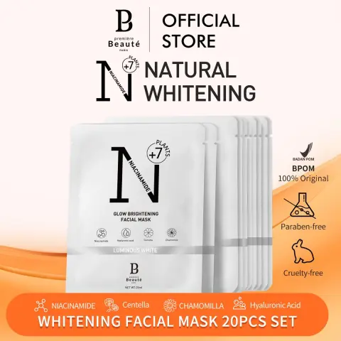 Premiere Beaute Whitening Facial Masks 25ml 20PCs Luminous White Glow Brightening Facial Mask acid hydrating niacinamide hyaluronic extract [Shopping Center]