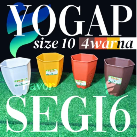 PROMO TERMURAH Pot Bunga Yogap Segi 6 (4 Warna ) Ukuran 10
