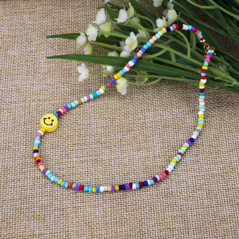 RRN 146 Kalung Choker Wanita Mutiara Korea Fashion Gaya Vintage Warna Warni Smile