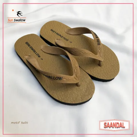 Sandal Jepit Sun Swallow Motif Kulit Bahan Karet Pria Wanita Anak Unisex (BISA SATUAN COD)