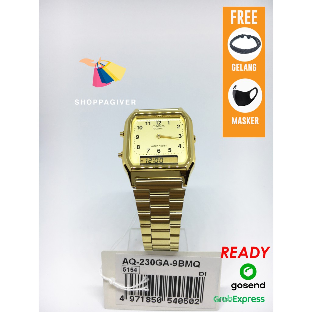 JAM TANGAN Original Casio Analog DIGITAL AQ-230GA / AQ-230GA-9B BERGARANSI+GELANG