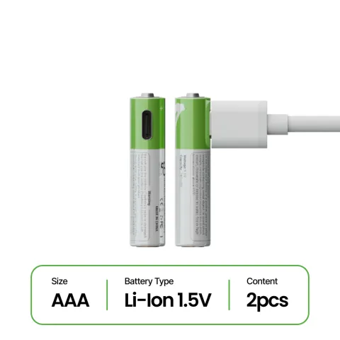 PowerBatt AAA 1.5V USB Type-C Rechargeable 2pcs Batteries