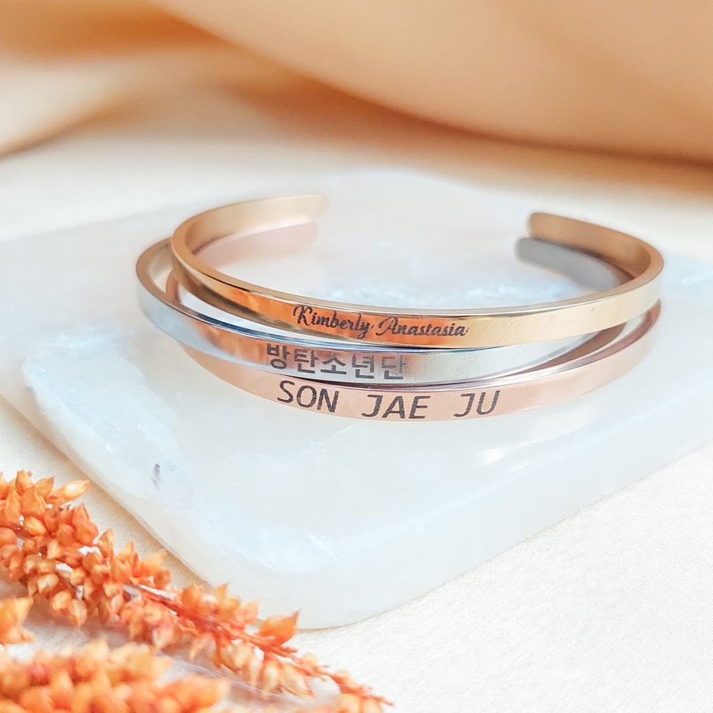 GELANG BANGLE 4 mm - Custom Grafir (NAMA / KATA)