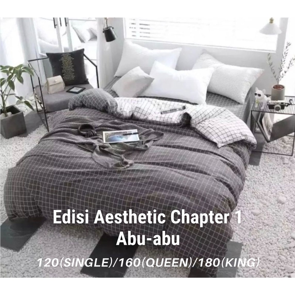 SPREI HOMEMADE AESTHETIC MOTIF KOTAK WARNA ABU-ABU UK SINGLE / QUEEN / KING