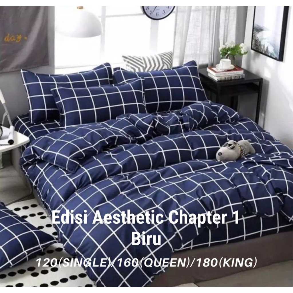 SPREI HOMEMADE AESTHETIC MOTIF KOTAK WARNA BIRU UK SINGLE / QUEEN / KING