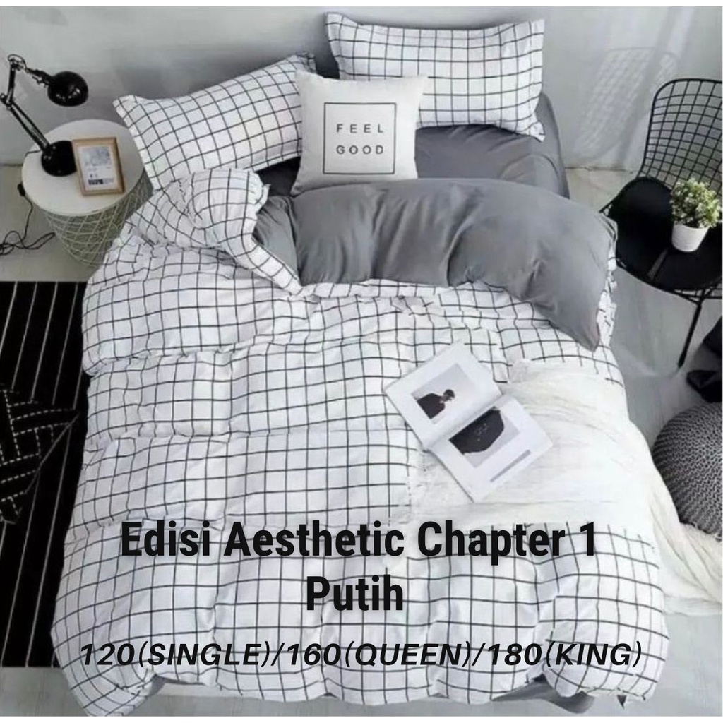 SPREI HOMEMADE AESTHETIC MOTIF KOTAK WARNA PUTIH UK SINGLE / QUEEN / KING