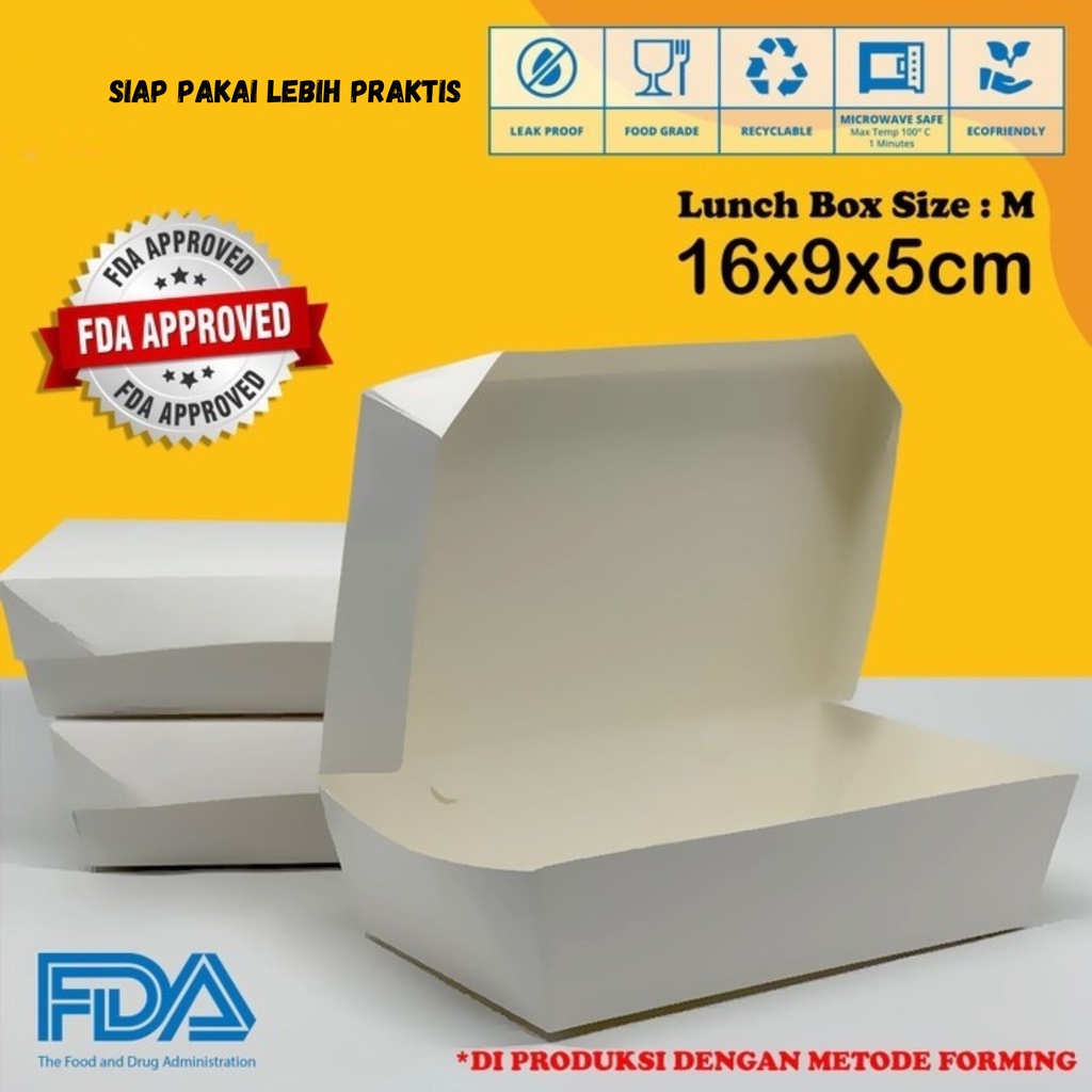 Paper Lunch Box Ukuran M FoodGrade Kemasan Makanan Kotak Polos