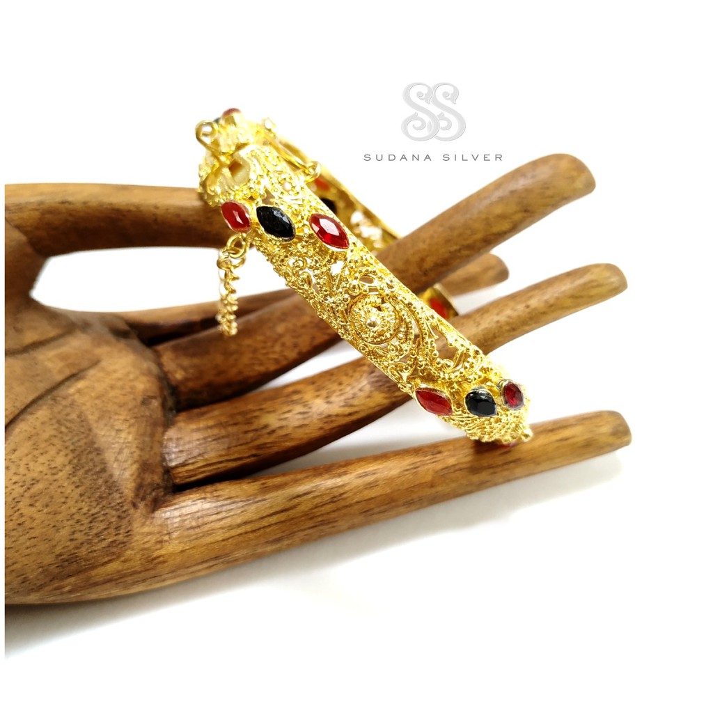 Gelang Alpaka Sirkon Padi Motif Sudira Gold Plated Bali