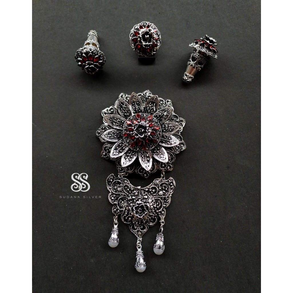 Set Bros Sirkon Merah Dua Susun Alpaka Bakar Aksesoris Bali