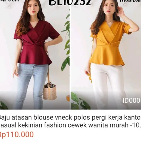 Baju atasan blouse vneck polos pergi kerja kantor casual kekinian fashion cewek wanita