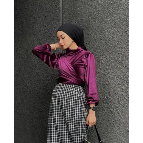 Souffle Wrap Velvet Turtleneck Top - atasan leher tinggi aksen ikat untuk lebaran , pesta ada Big size
