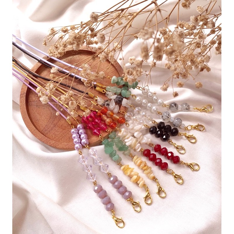 (NEW) STRAP MASK BATU ALAM / kalung masker gemstone tali korea chain gold silver