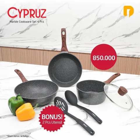 Cypruz Marble Cookware Set 4 Pcs Bonus 2 Pcs Utensils